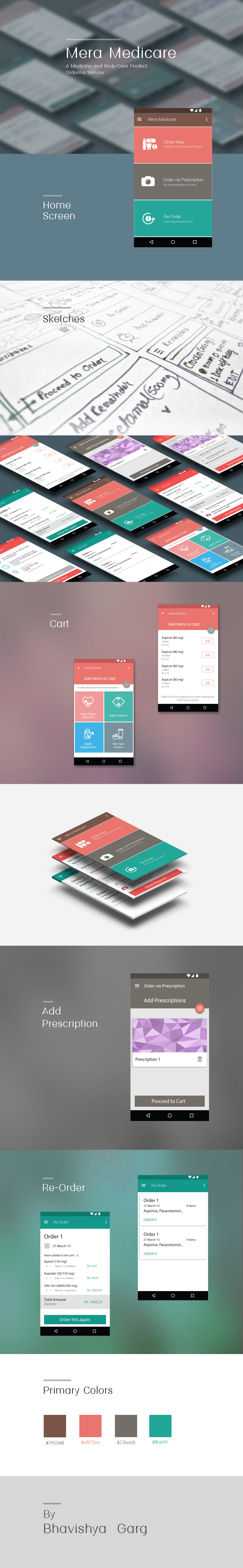 UI Design for Android App of the Medicine and Body-care product Ordering service in Delhi, Bangalore, Gurgaon and Noida. I kept UI simple and used took inspiration from Material Design for this app UI.